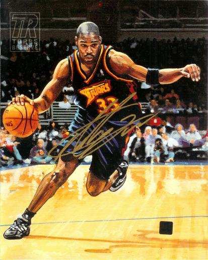 The draw of this box is of course the 8×10 canvas, with the grand prize being a Shaq or Magic Johnson autograph. We weren’t lucky enough to open one of those, but Jamison isn’t a bad consolation. The others on the checklist are Jermaine O’Neal, Elton Brand, Shawn Marion, Andre Miller, Baron Davis, Steve Francis, Wally Szczerbiak, Keyon Dooling, Larry Hughes, Mike Bibby, and Maurice Taylor. The big prizes at the time were likely Brand and Steve Francis, the star rookies from the previous year.