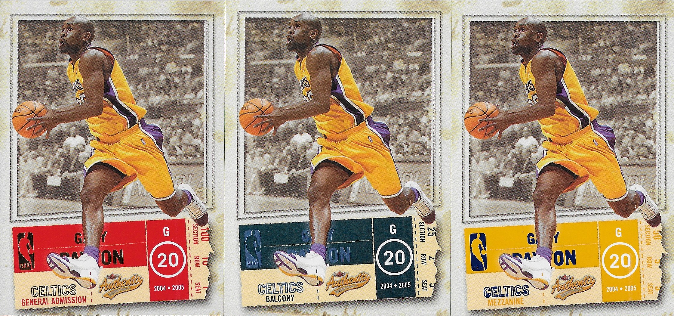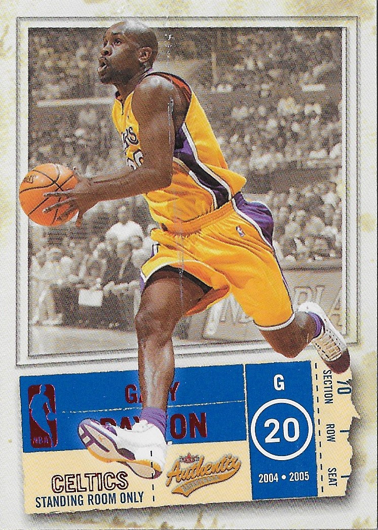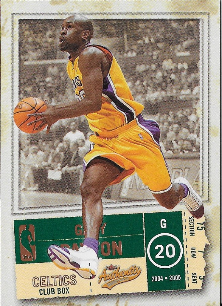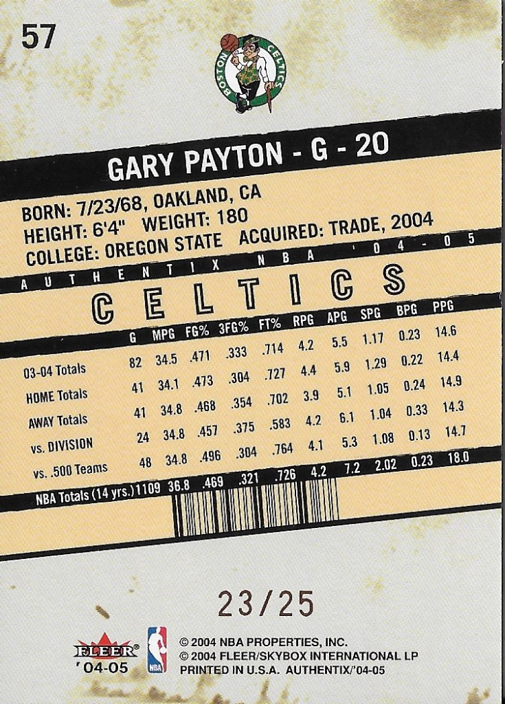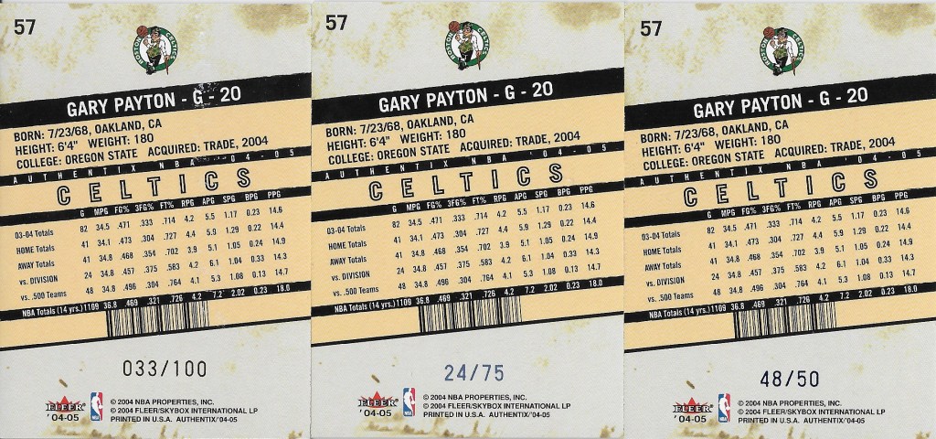 A couple interesting things here. Payton, while known most for his time with the Supersonics, is shown here in a Lakers uniform, but is listed as a Celtic, where he played the 2004-05 season. The green parallel sure would have looked great with Payton in a Sonics or Celtics uniform.