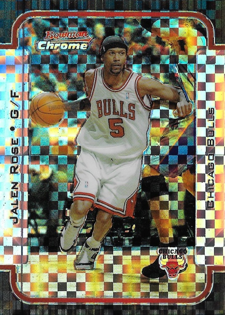 During the following season, 2001-02, Rose was traded to the Bulls along with Travis Best for a group of players featuring Ron Artest and Brad Miller. I don’t have as many cards from Rose post-Pacer days, but I do have this Bowman Chrome x-fractor from 2003-04.