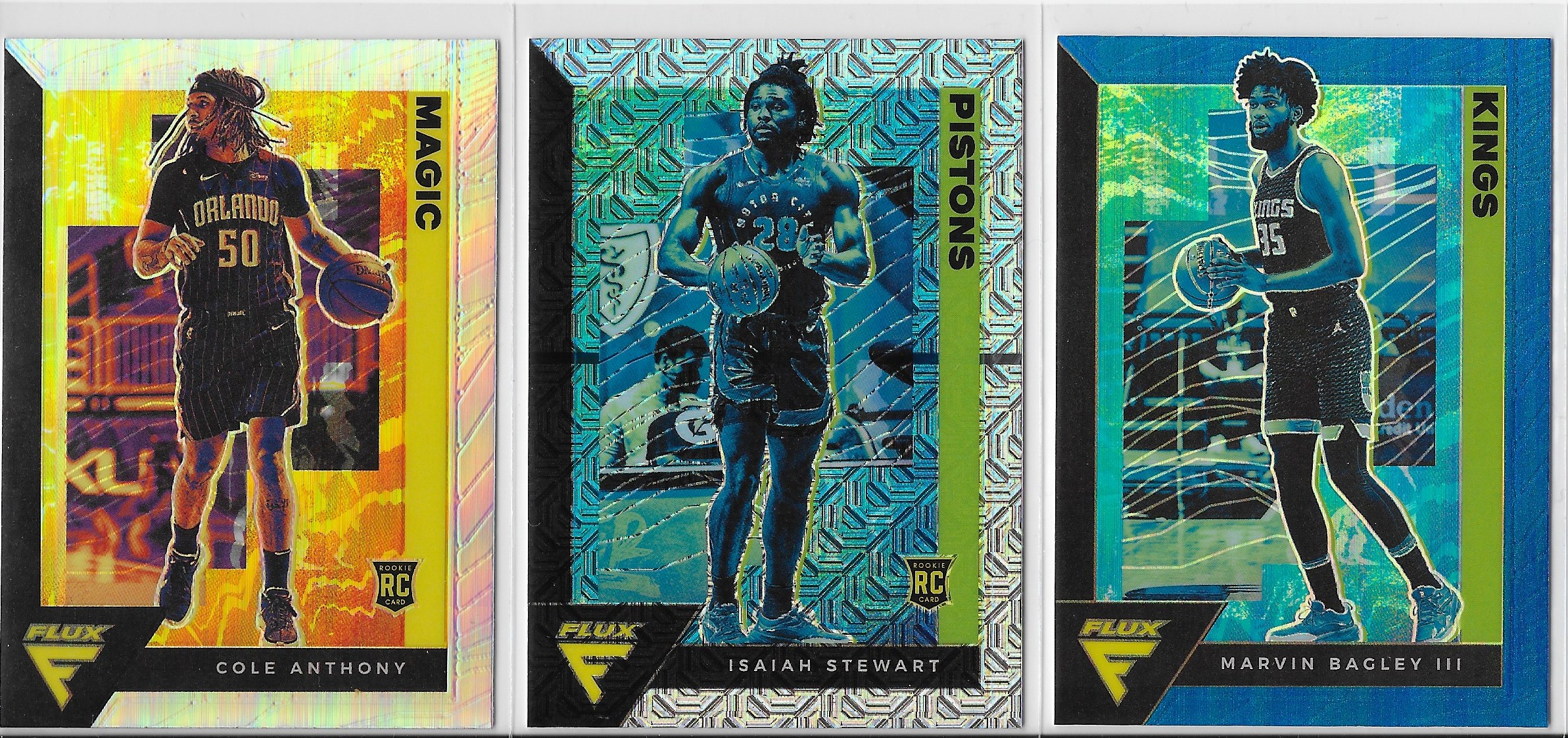 Retail blasters and hanger packs have started to show up in local stores and are also staying online past a few minutes, which is a welcomed shift. Even though I don’t typically open a bunch of current year products, my son is all about basketball right now (he’s 5) and is showing a lot of interest in cards. He mostly focuses on the teams of the players and less on the design. He recognizes certain players, and loses his mind when he sees a Bucks card. Giannis and Jrue Holiday are his favorites. We opened some Illusions and Chronicles at Christmas, and when I saw Flux on the Target app I decided to grab one blaster for something different to open. Although ideally I’d like to see more than 18 cards in a blaster, I do like the design of these. One blaster is my limit for this product, though, and probably all that I will open until 2021-22 Hoops comes out.