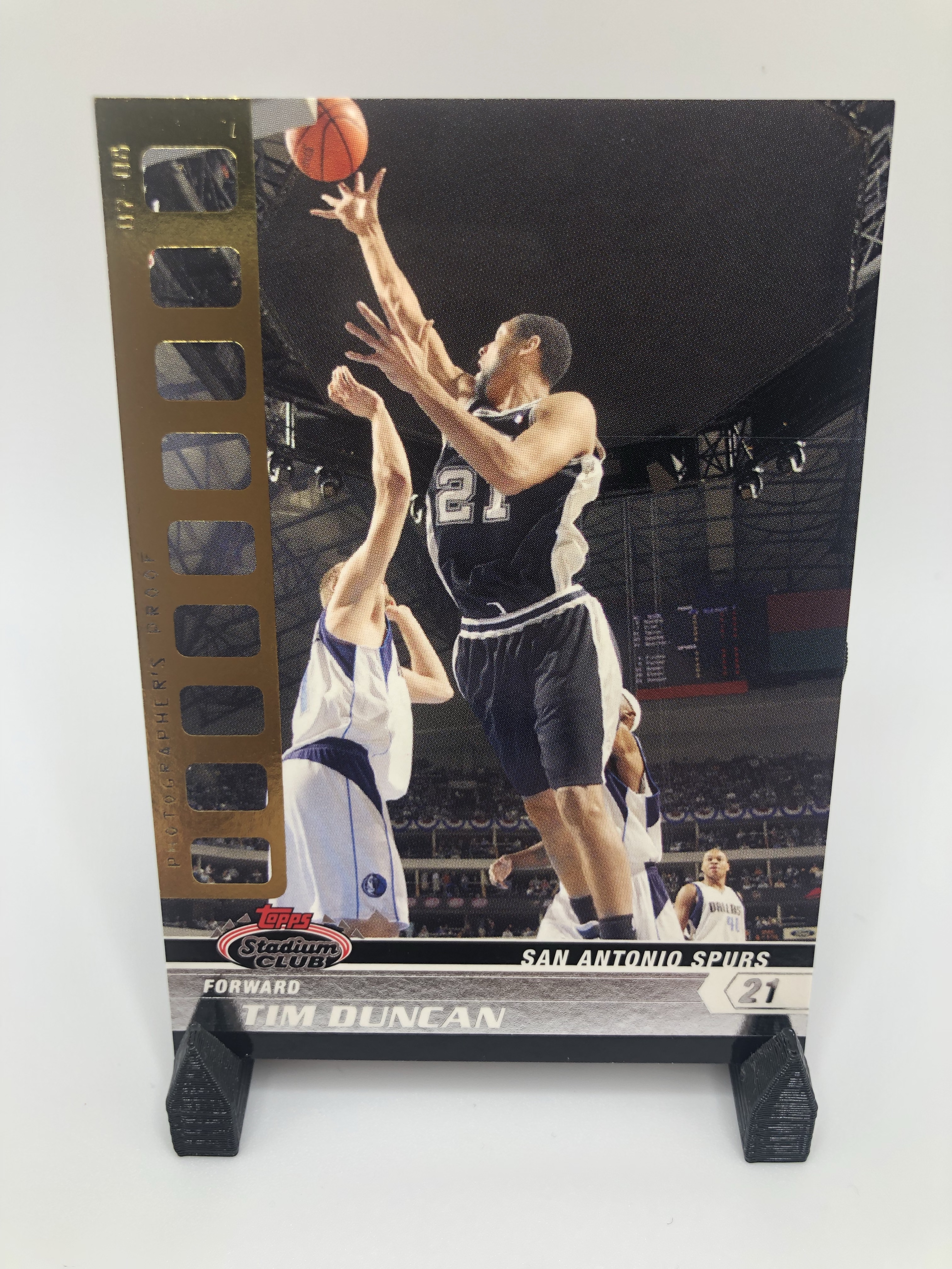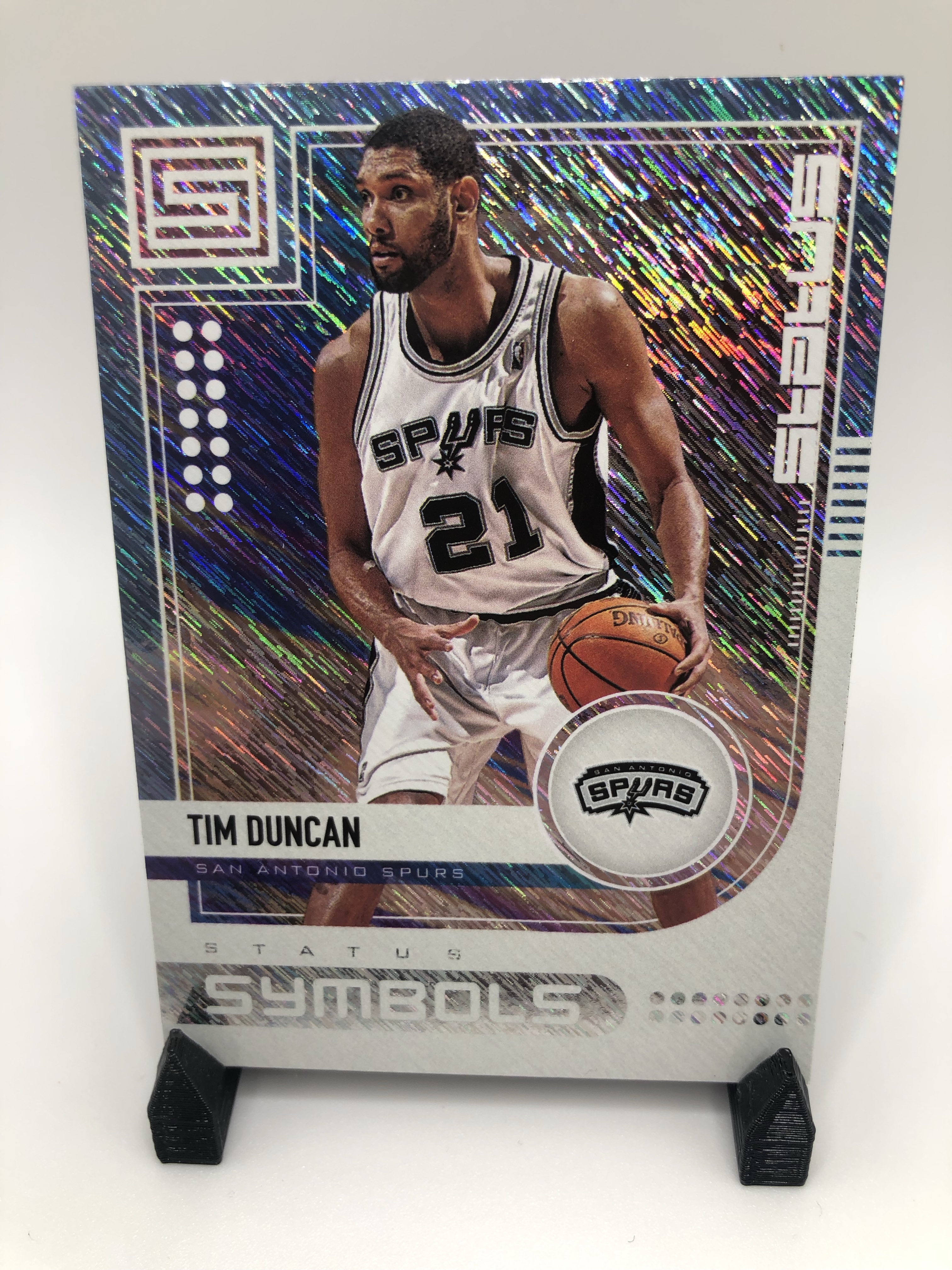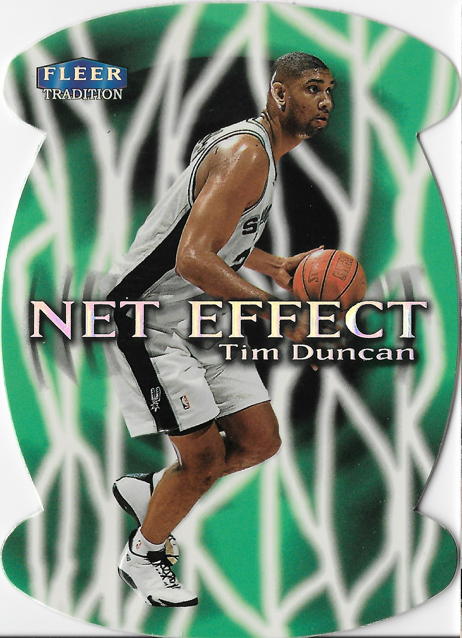 The go-to shiny cards for me, and for a lot of collectors are Topps Chrome refractors. They hold up and the collectability and demand for these cards continue to increase as years go by, especially for the stars. The nostalgia factor is high here. What I like about the Chrome refractors compared to say, Prizm silvers for example, is that more of the background image is shown. The border takes up minimal space on the card. I love seeing Duncan lefty hook over the helpless defender.