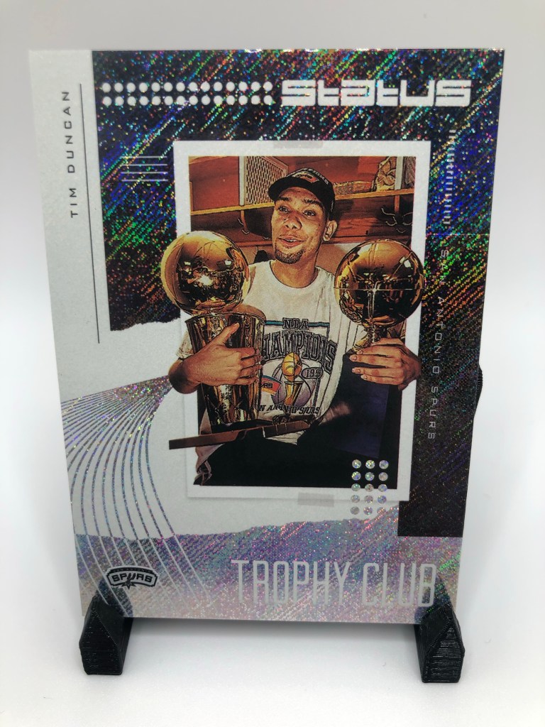 The Trophy Club insert set uses the shimmer but to a lesser degree than Status Symbols. It’s still a focal point though, as the photo with Duncan and the championship trophies are relatively small compared to the shimmering border.