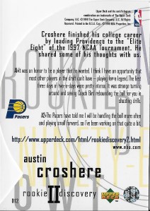 The year is 1997 and the Pacers, through a set of moves, transform from a borderline playoff team into a contender. They reacquire Mark Jackson, hire Larry Bird as head coach, and trade for former All-Star Chris Mullin. In the midst of those moves, they draft Austin Croshere, a forward out of Providence.