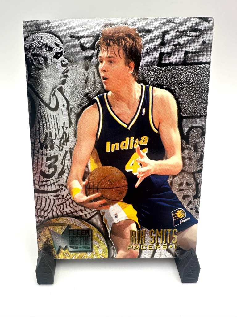 I snatched up this 1995-96 Rik Smits Metal Silver Spotlight parallel featuring another hall of fame center. The scanner didn’t do this one justice so I had to take a picture on my phone. The Silver Spotlight parallels are 1 per pack, but I don’t often see them in person and the price was fair so I grabbed it, which brings my Smits collection total to 125 unique cards.