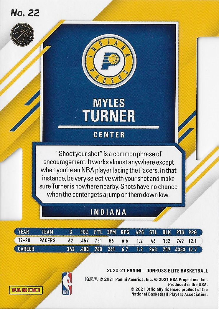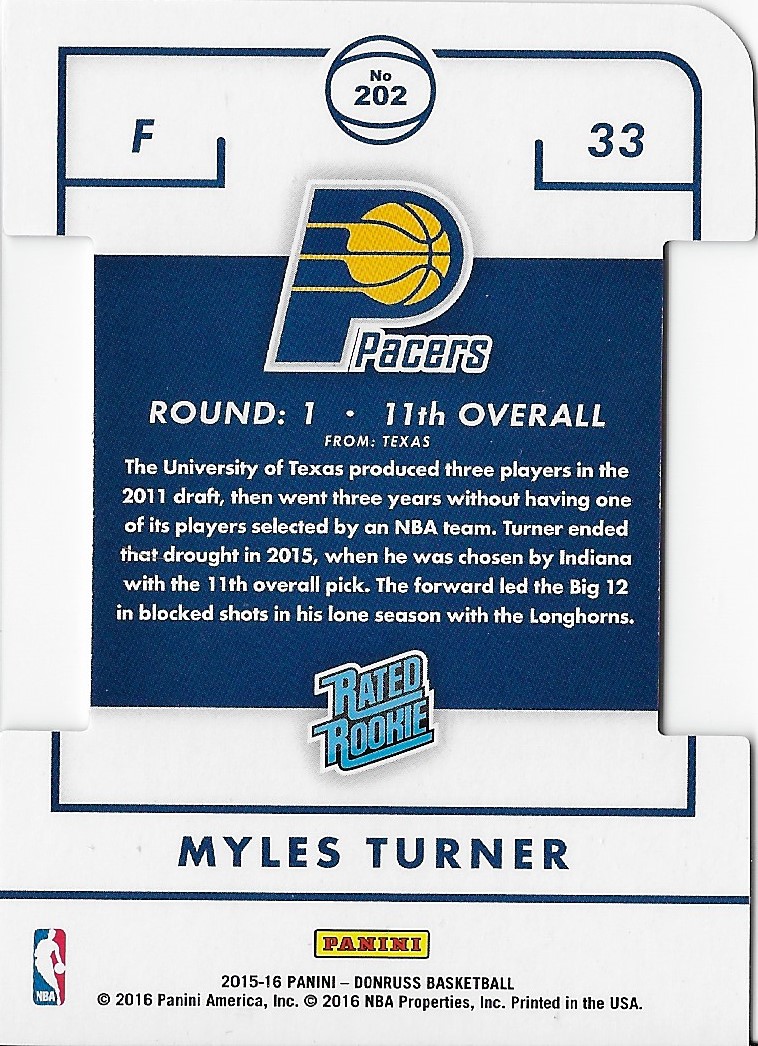 Another parallel set I’ve been adding over the last year is ‘Status’, which has floated between brands over the years. Sometimes in Donruss, other times in Donruss Elite or the Status product itself, the die-cut cards look great and definitely fit in my lane. They are limited of course and have a shine that the scanner doesn’t really pick up. I know I’ll never get every Pacer. Some are 1/1, being serial numbered to the jersey number of the player, but I’ve accepted that going in. Card collecting is a race without a finish line. I’m pleased to have the Turner from his rookie season. Can’t ask for much more than a limited die-cut rookie year card.