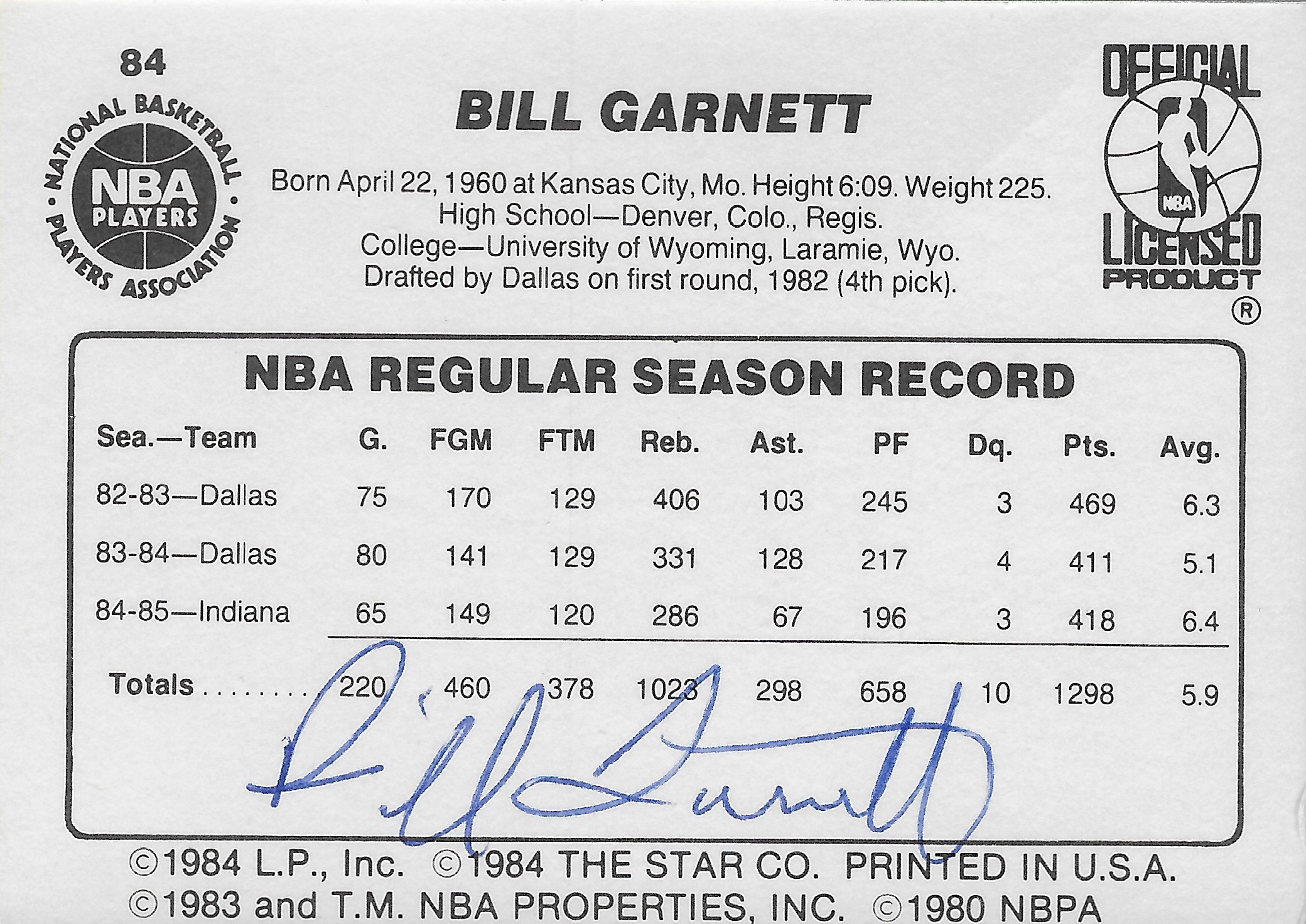 Next up by playing career is the 6 foot 9 Bill Garnett, signing the back of a 1985-86 Star card, also returned very quickly and with a great note. A star during his time at Wyoming where the school went to back to back NCAA Tournaments, we asked Mr. Garnett about his time there and who the toughest players he matched up against were. He cited the toughness of the WAC conference at the time, pointing out some of the phenomenal talent that his Cowboys faced.