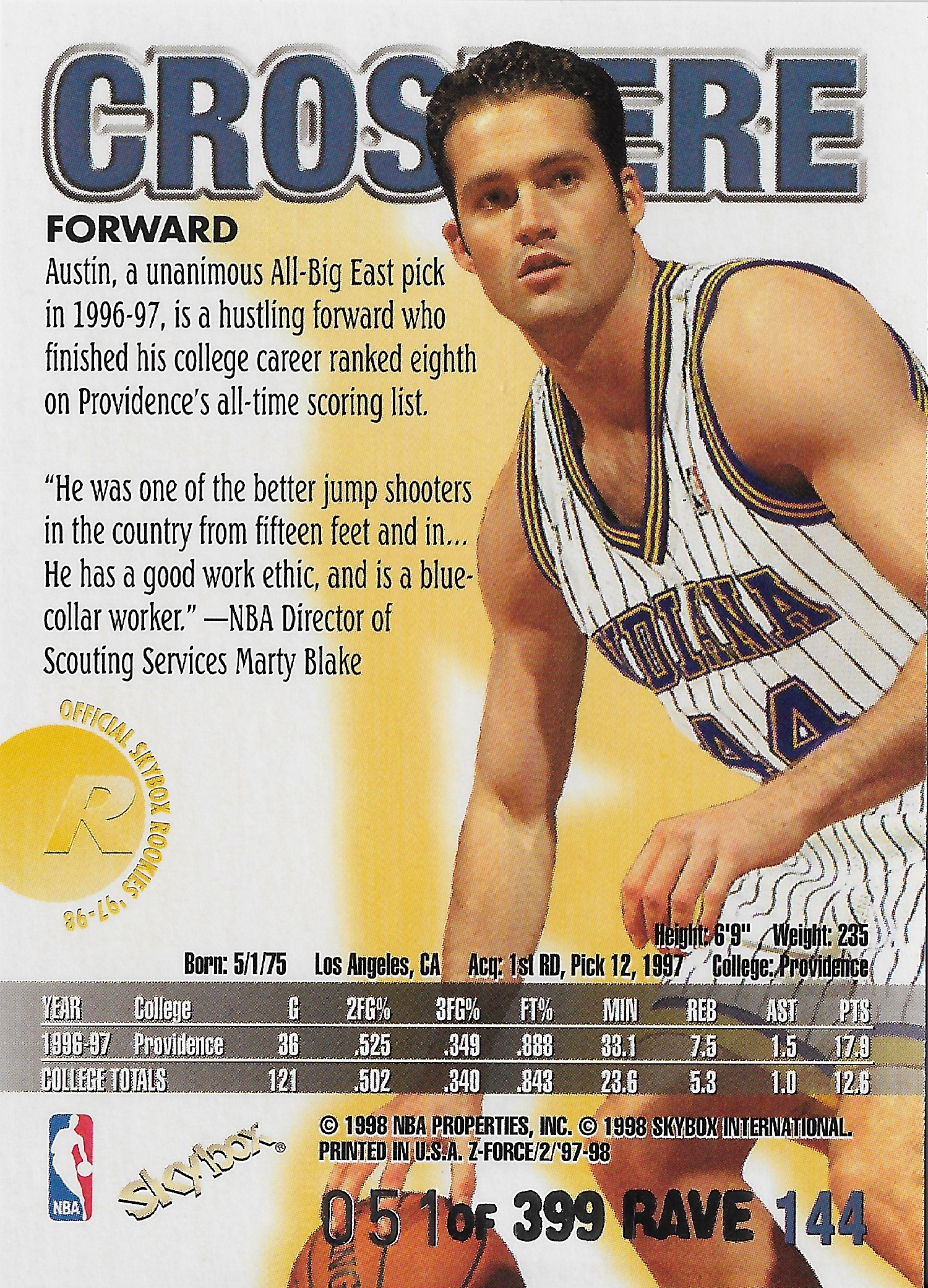 Also, what a sweet image on the back. What a time when the backs of cards had images of players not only different from on the front of the card but in addition to just a team logo and/or a year or two of stats. Makes me want to go and watch some Al Harrington highlights.