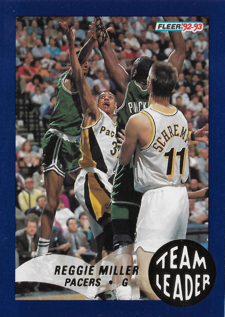 Recapping some of the cards from the bubble mailer, the first is one of Reggie’s earliest insert cards, this one from 1992-93 Fleer. The Team Leaders insert set is one player per team, and in that way it’s kind of a snapshot of the league at that time. Somehow despite having many of Reggie’s early 90s cards already in my collection, I hadn’t added this one, and it was a nice and cheap COMC addition to grab and bundle with others.