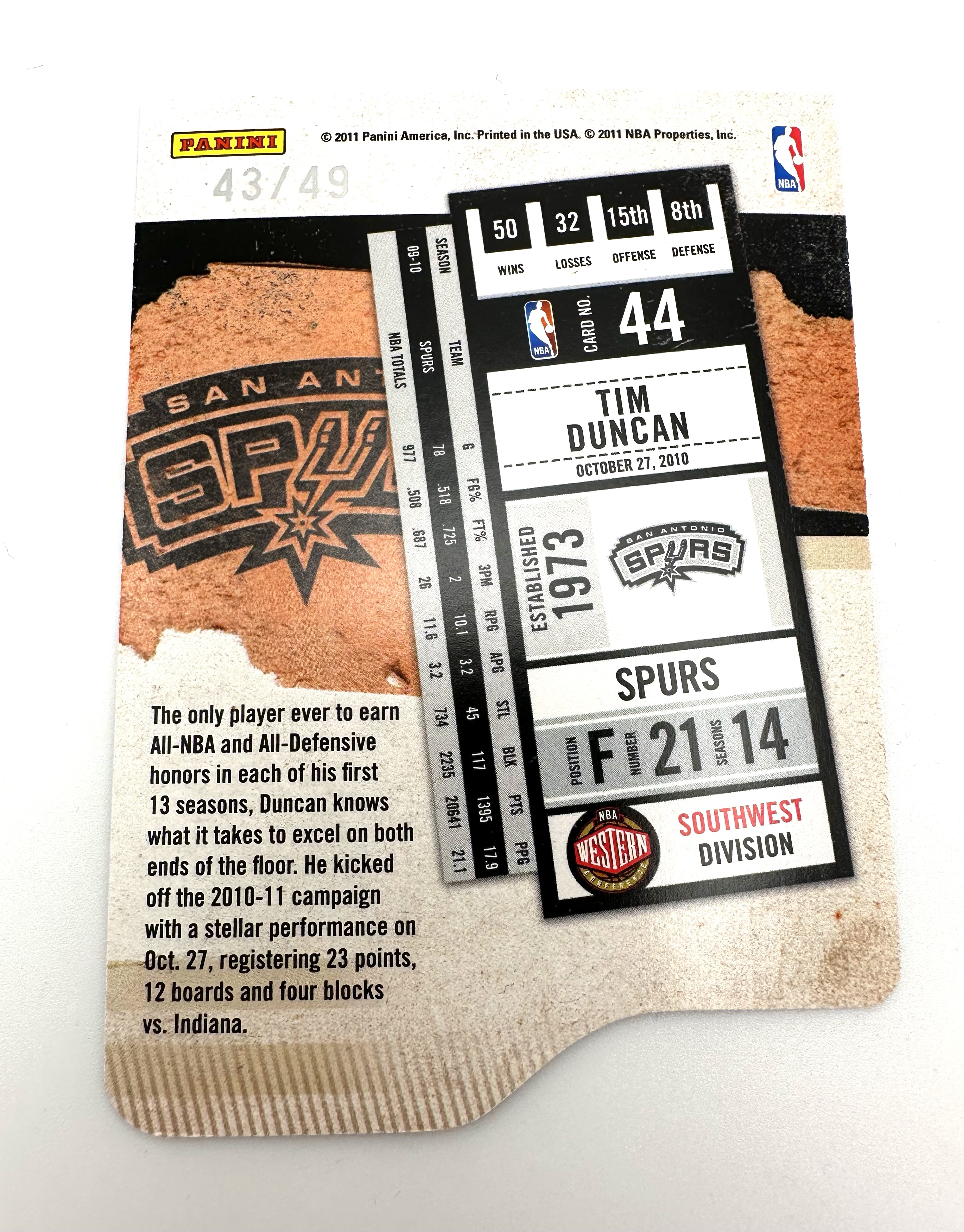 For the players that didn’t have memorabilia cards (6), they instead had a parallel card numbered to 100. Duncan was one of those 6 and this is my next Duncan addition this week.