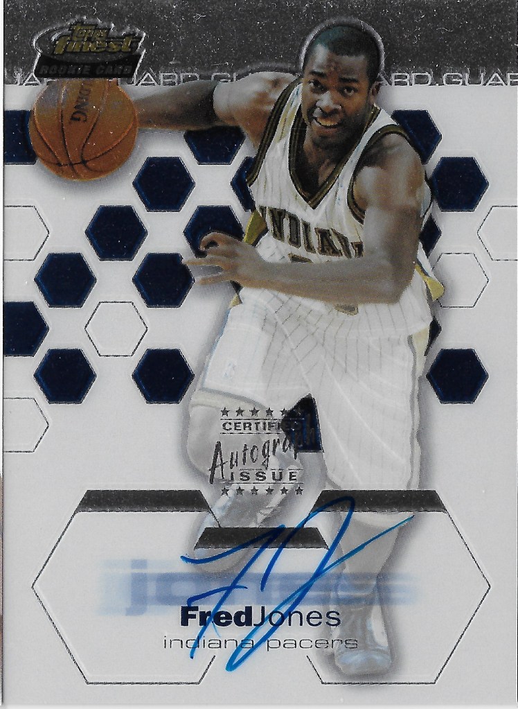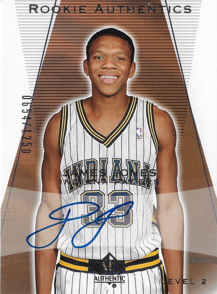 Ultimately a teammate of LeBron James in Miami and Cleveland and now a pretty successful GM with the Suns, I wanted a Pacers rookie to collect so badly in 2003-04, and so I picked up as many cards of James Jones as I could find. Without a first round pick in 2003, the Pacers took James Jones in the second round. Jones doesn’t have nearly the quantity of cards as the first round picks from that year, but he is included in some nice sets, my favorite being 2003-04 Mystique (still looking for the Gold parallel /50). Happy to have his 2003-04 SP Authentic rookie card for the binder, right next to his teammate, Fred. Crazy how young he looks here.