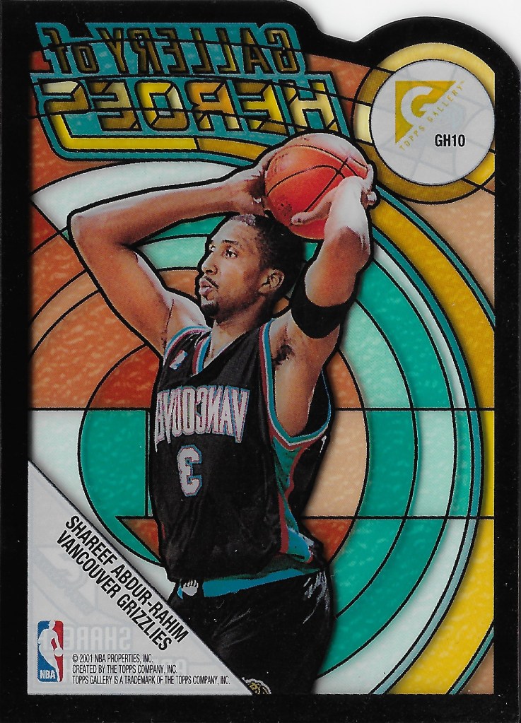The 2000-01 Topps Gallery, Gallery of Heroes insert set, with 1:24 pack odds, is affordable and beautifully designed. I just wish a Pacer was represented in either the 1999-00 of 2000-01 set. I do have the Duncan from 1999-00 and it was a huge card for me to add to my collection over a year ago now. Maybe I can pass this Abdur-Rahim off to a fellow collector who will appreciate it, but for now I’ll enjoy it in my collection.