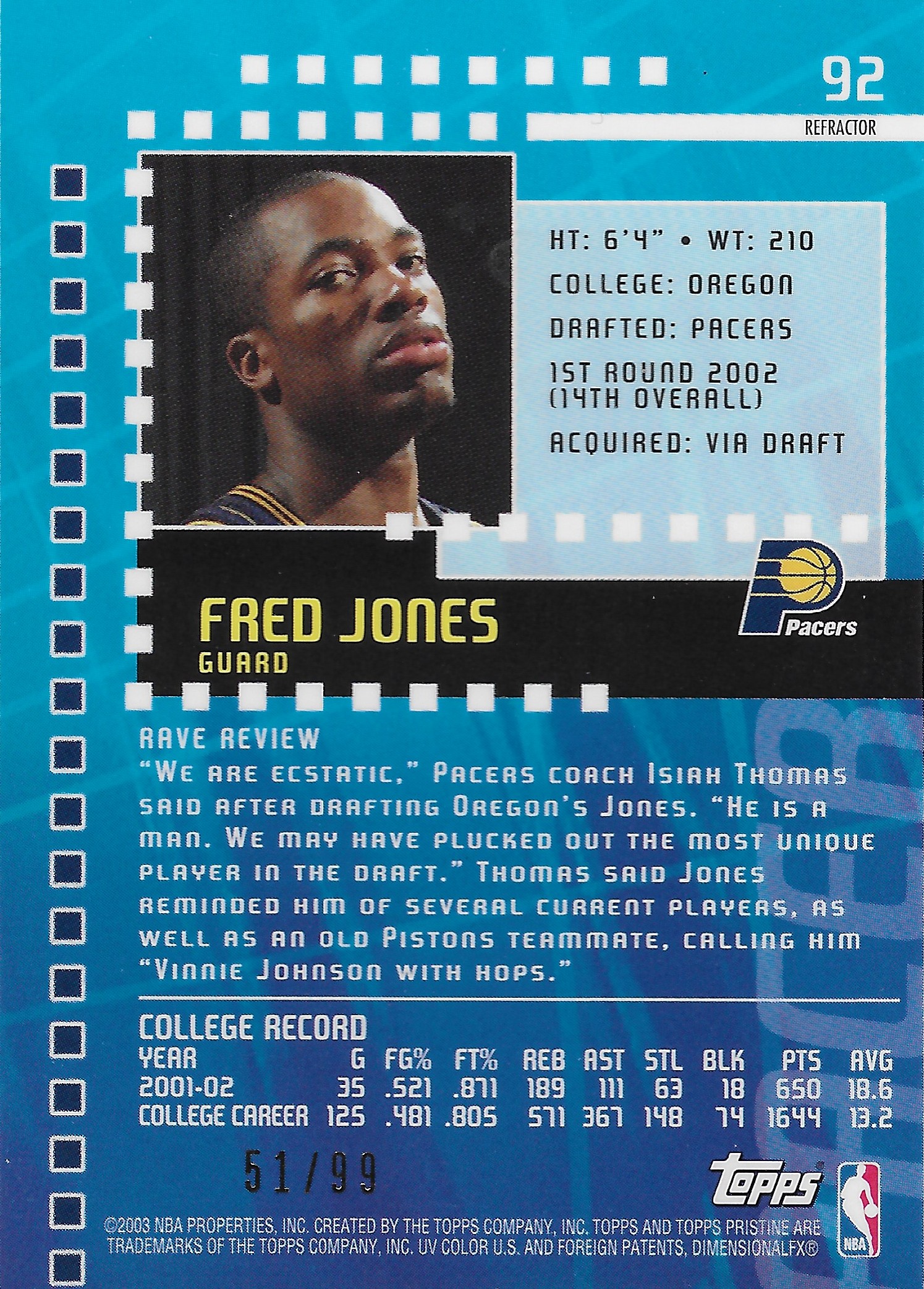 You can see the text above Fred Jones on the front of the card that indicates this is a ‘Rare’ rookie, while the shine and the ‘Refractor’ text on the back indicates its refractor status.