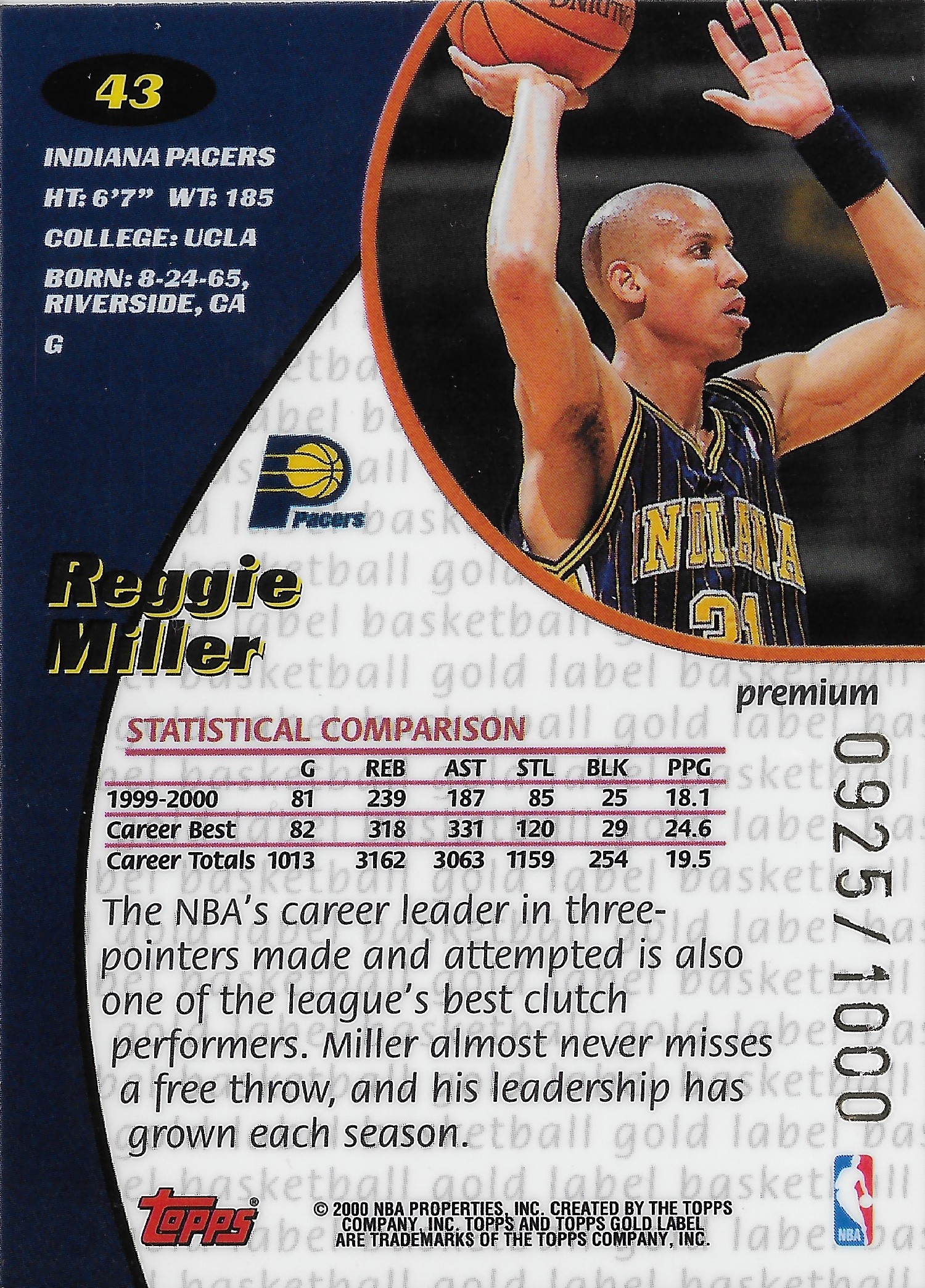 This was the other card in the $2 box. This might have been in a $2 box in the 2000s, but to get it there now was pretty lucky. This is a 2000-01 Topps Gold Label Premium parallel /1000. The veterans are out of 1000 while the rookies are out of 100. You can see the Premium text in the gold ‘semi-circle’ in the bottom left of the card. The Gold Label brand has always felt very ‘premium’ to me since it’s release. And finding any Reggie parallel isn’t the easiest these days.