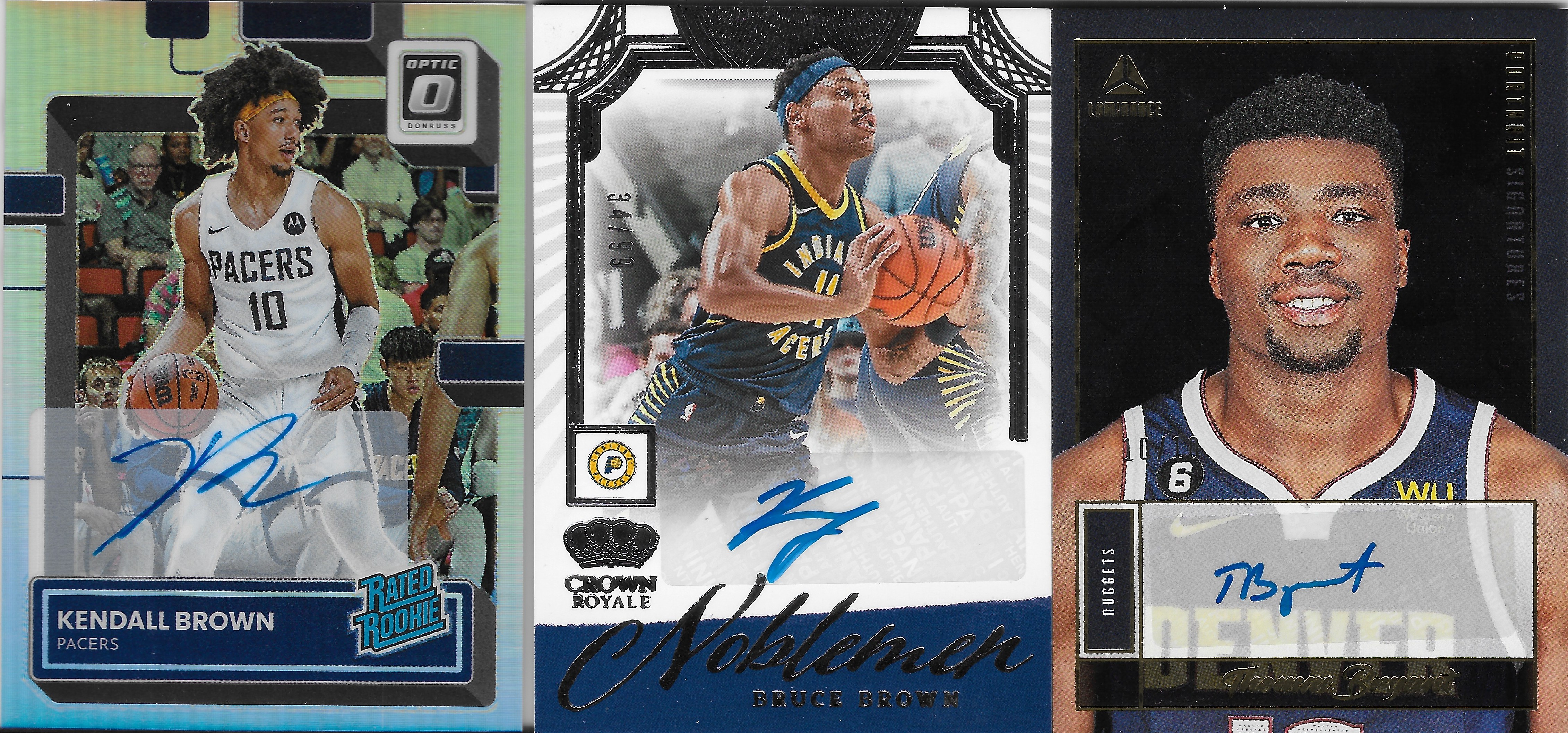 Kendall Brown is showing up in releases as a Pacer in current year releases. He most recently played for the Nets G-League affiliate. If I’m grabbing a binder autograph, can’t do too much better than a silver rookie autograph from Optic.