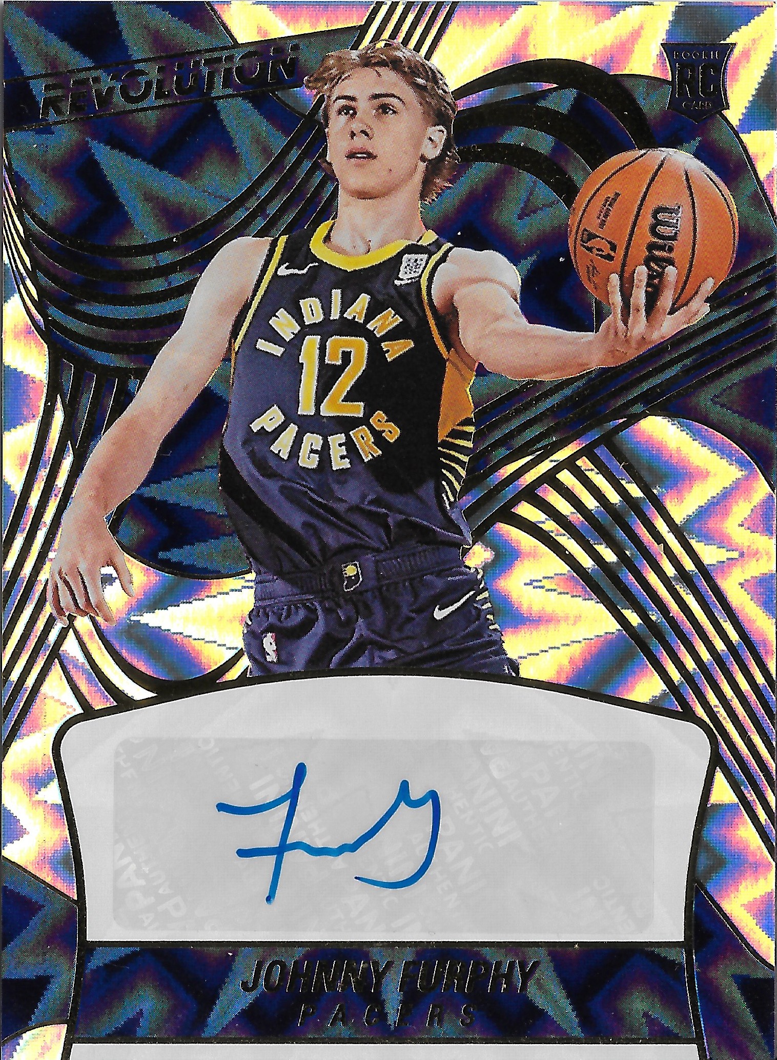 The other certified autograph is of a player I hope will be a part of the Pacers long term, rookie Johnny Furphy. He’s looked like he could be a rotation NBA player during his limited minutes on the NBA Finals Pacers team. I held out on purchasing an autograph card from some of the early releases, but I finally caved and bought one from Revolution. This is a Impact parallel out of 100.