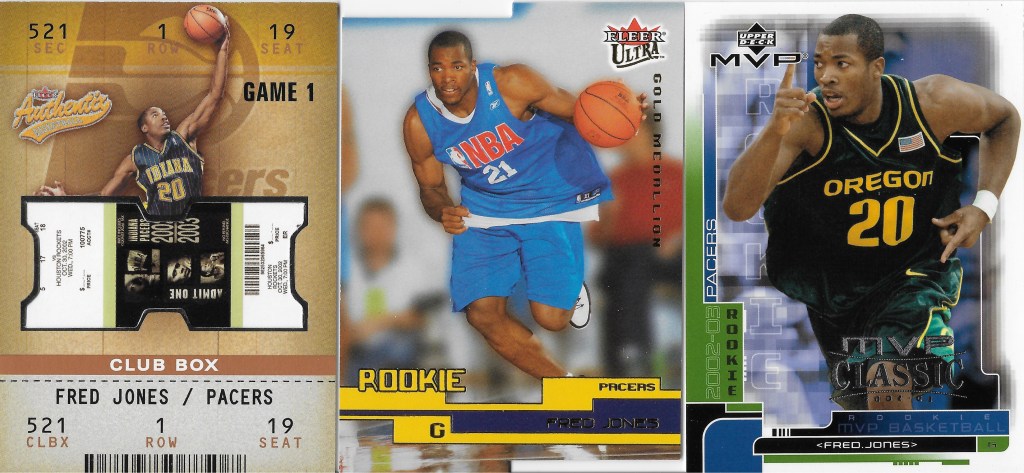 Three Fred Jones rookie parallels? Cards that teenage me would have been over the moon to land back in 2002 or 2003. Both the Authentix and Ultra are /100. 2002-03 Authentix remains one of my favorite sets of all time. And the Gold medallion rookies in Ultra were numbered to 100 in both 2001-02 and 2002-03. The MVP card is a ‘Classic’ parallel, unnumbered, but any rookie parallel is a welcomed one.