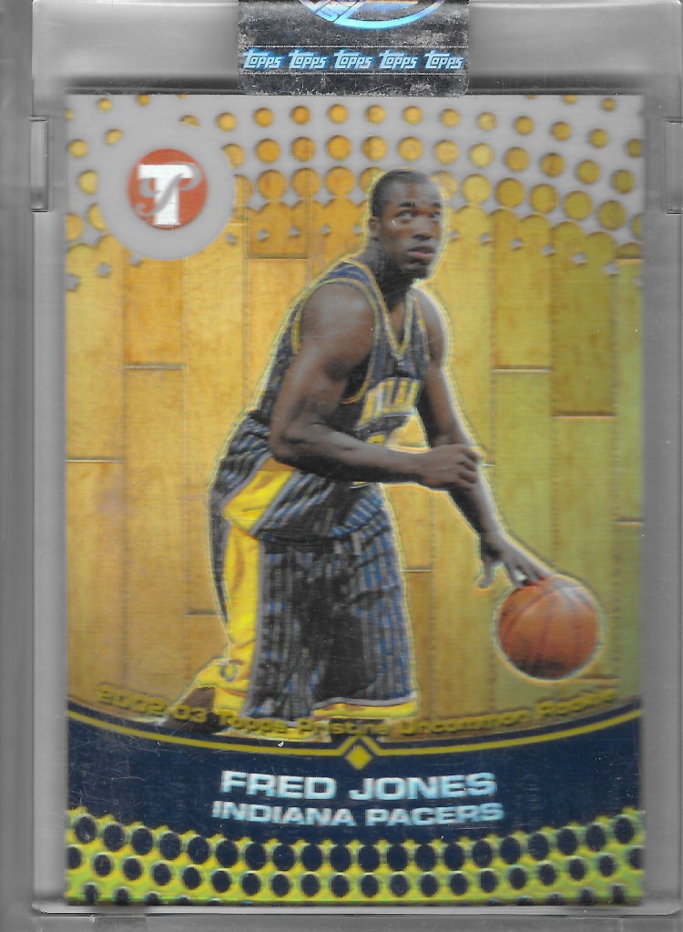 From the last of the Fred Jones group of cards, I added a Pristine uncirculated Uncommon refractor, soon to be circulated and in my rookie year binder. This one is out of 499. All of these rookie cards just flash me back to my early 2000s collecting, and cheering for those Pacers teams. This Flair rookie card is no exception. The good ole’ days of collecting, and being a basketball fan, for me.
