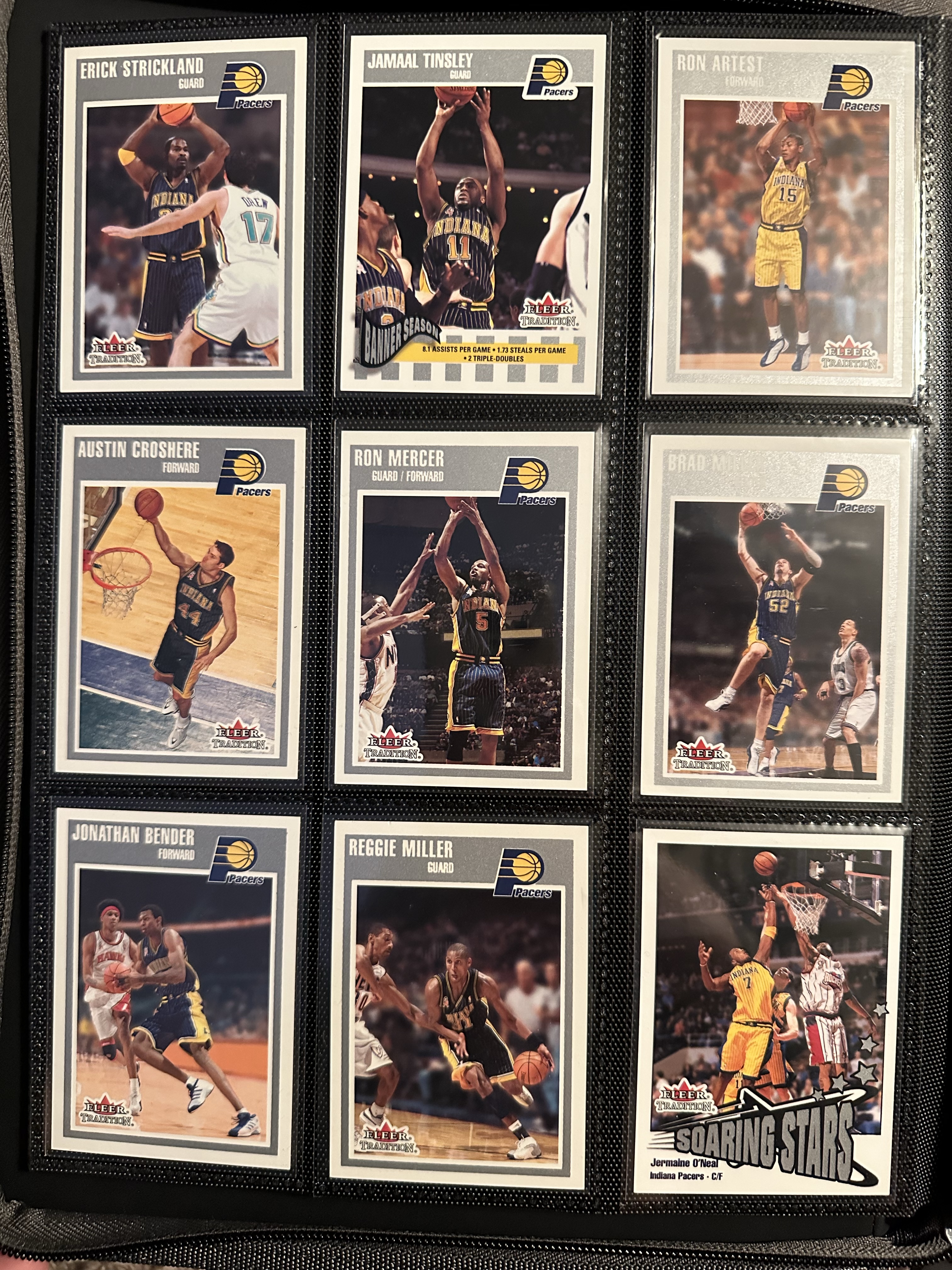 Here’s the binder page. The Tinsley in the top middle is actually the 10th card in the team set. It’s filling the Al Harrington spot for now so that I have a complete page.