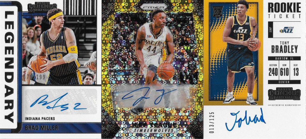 Lastly, Tony Bradley played key minutes for the Pacers in the playoffs this past year. He may never appear on a Pacers card, so I grabbed an on-card autograph from his time with the Jazz. It just happens to be a jersey numbered copy – even better.