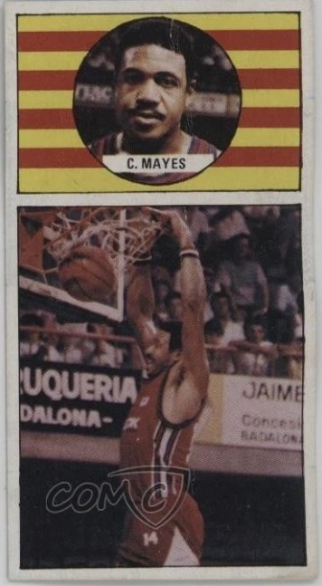 While Mayes doesn’t appear in any NBA sets, he does appear in one Spanish set, found thanks to eBay and TCDB. It’s a Converse set released in 1986, and his card pictures him for Manresa.