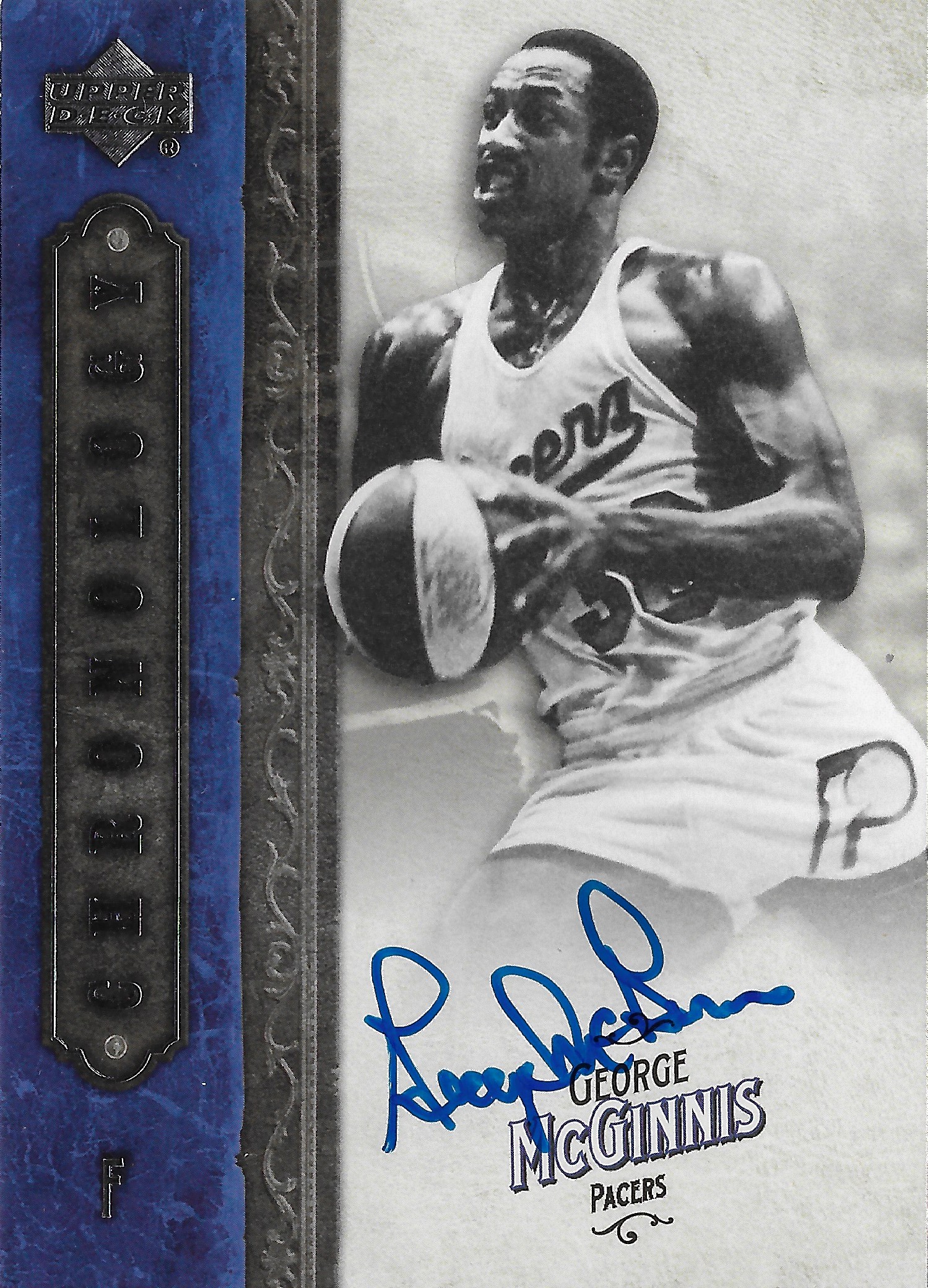 I’m thrilled that I picked up a 2006-07 Upper Deck Chronology autograph of McGinnis years ago. It remains one of my favorite autograph sets with several significant Pacers included. The design is sharp with beautiful on-card autographs. I wouldn’t choose any other set to be included in this autograph binder project.