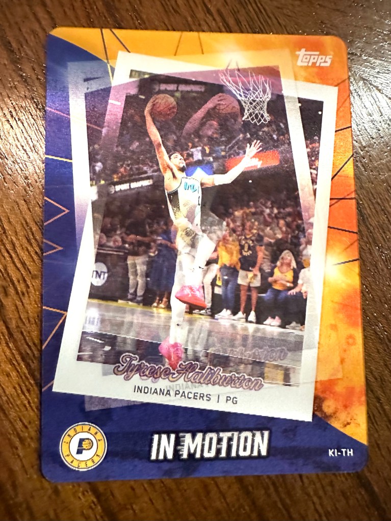My other Haliburton pickup is this 2025-26 Topps Attax In Motion insert, a lenticular card that has a photo within the larger card border. Again, a pretty interesting design, on a card from a set with rounded corners. These Attax cards look pretty great and with it being the first licensed Topps NBA product, getting a Pacers insert from it felt pretty significant. I am unsure how or if this card fits into the collectible card game aspect.